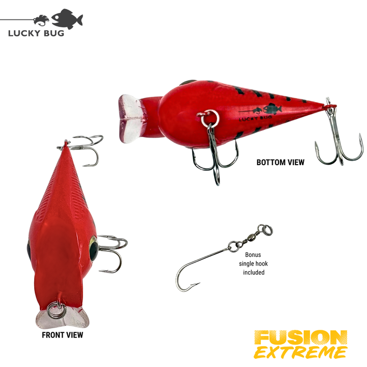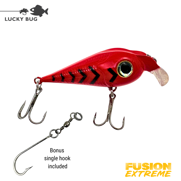 The Fusion Extreme crank-bait is an amazing lure with vibrant, erratic darting action that triggers aggressive reaction strikes from predatory fish. This lure also features two hook locations (and comes pre set with 2 treble hooks). PLUS, we include a single hook in the package for even more versatility, to allow you to set it up for your specific presentations, whether you're in rivers, lakes or oceans.