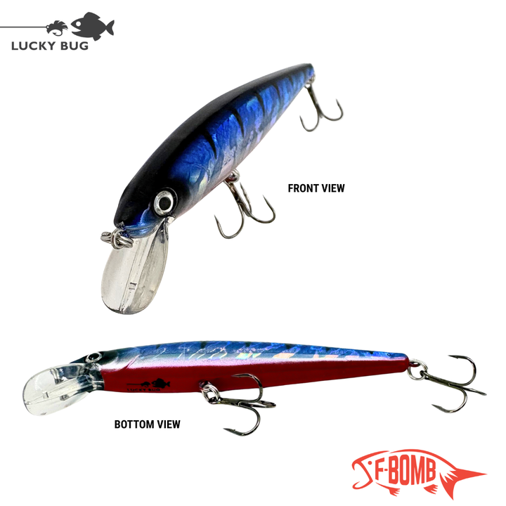 The F-Bomb is Lucky Bug’s boldest, hardest-hitting crankbait — built to provoke aggressive strikes and perform in a wide range of conditions. Designed in Canada, the F-Bomb delivers unmatched action thanks to Lucky Bug’s exclusive Trimaxx Technology, combining detailed body graphics, random underwater movement, and erratic vibration patterns that fish can’t resist.
