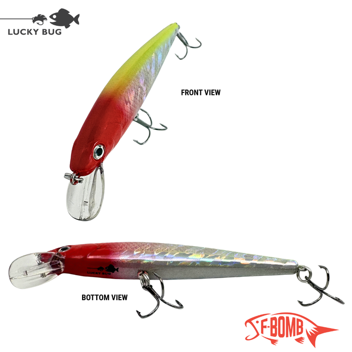 The F-Bomb earns its reputation for turning slow days into big hits. Its unique swim pattern and vibration profile mimic stressed prey, triggering instinctive reaction strikes even from hesitant fish. Paired with Lucky Bug’s signature graphics and handcrafted quality, it’s one of the most effective multi-species crankbaits on the market.