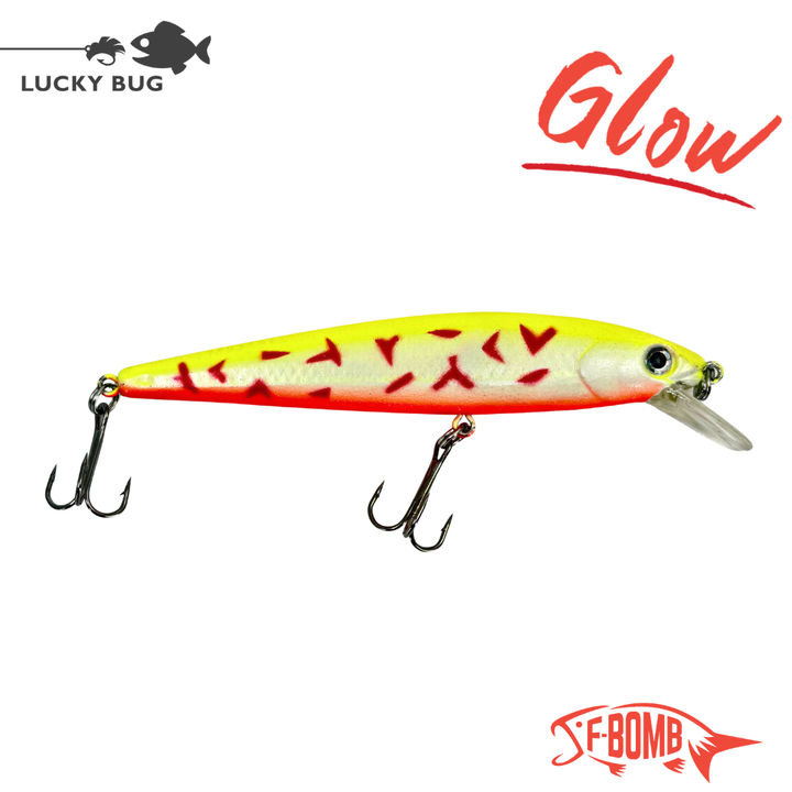 Our F-Bomb floating lure is designed to impress – whether it’s twitched top water as a surface bait, retrieved as a shallow runner, weighted with a split shot for medium depths or bottom walked off a three – way swivel or bottom bouncer – this wounded minnow action and a loud rattle, compels fish to bite, even when they’re not hungry!