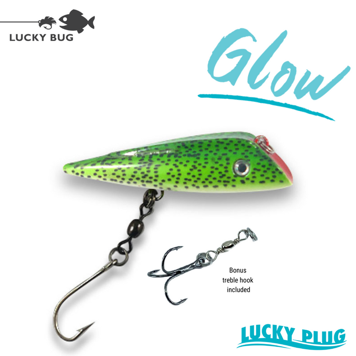 These Lucky Plugs come rigged with a single hook attached to the middle pin but we have also included a treble hook in the package to allow for a variety of hook configurations and presentations. PLUS, we now have a second pin on the tail for even more flexibility!