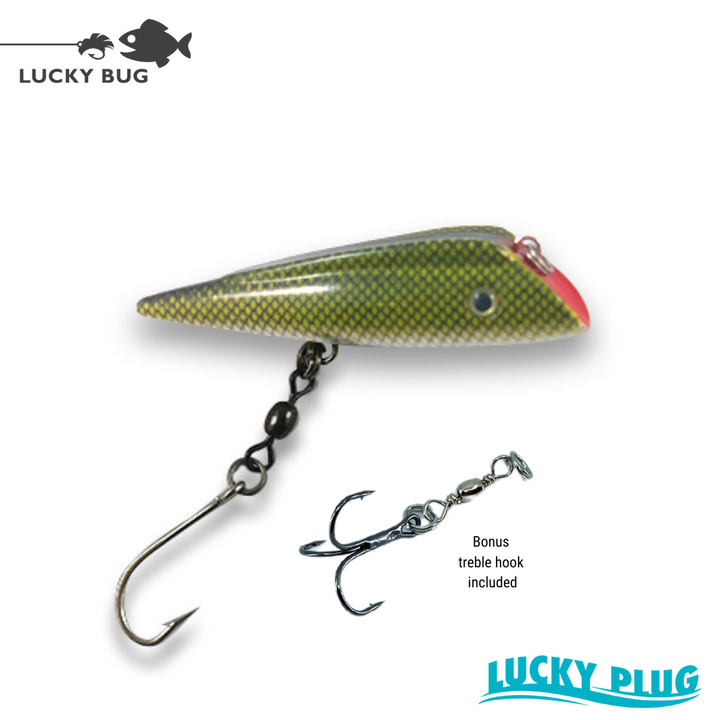 These Lucky Plugs come rigged with a single hook attached to the middle pin but we have also included a treble hook in the package to allow for a variety of hook configurations and presentations. PLUS, we now have a second pin on the tail for even more flexibility!