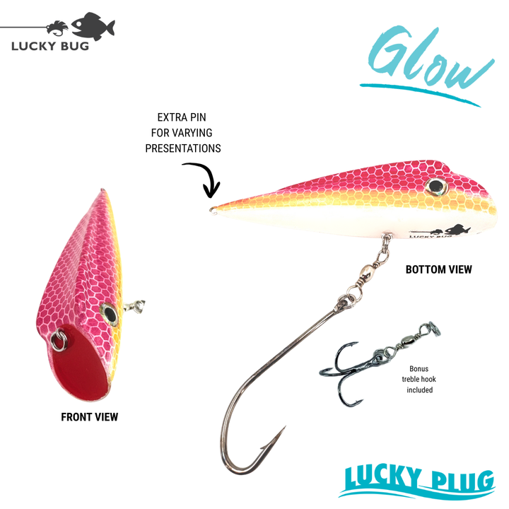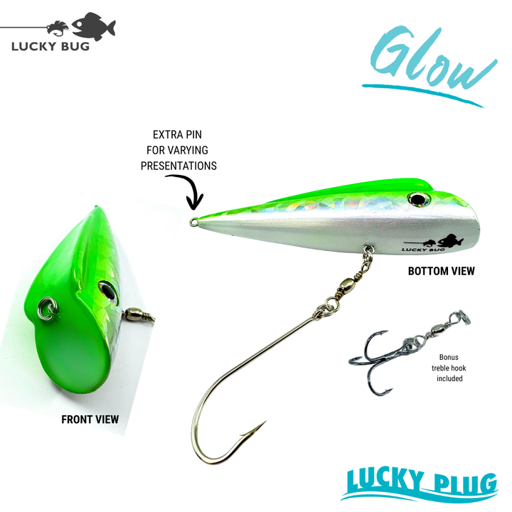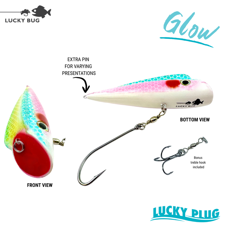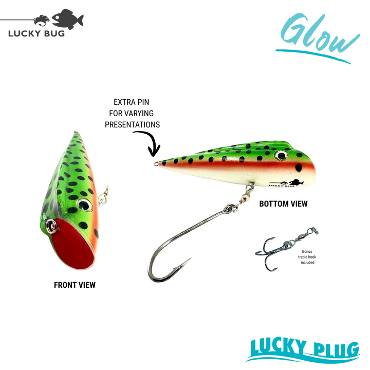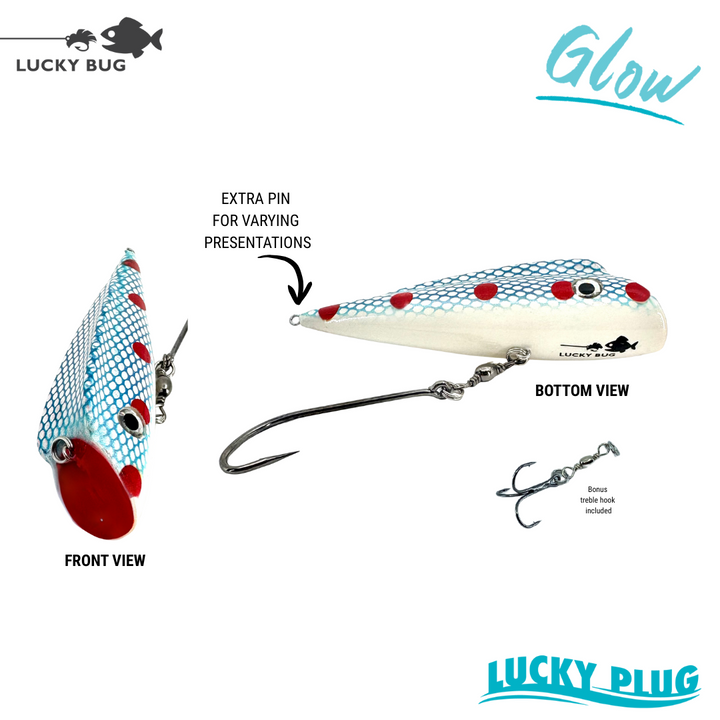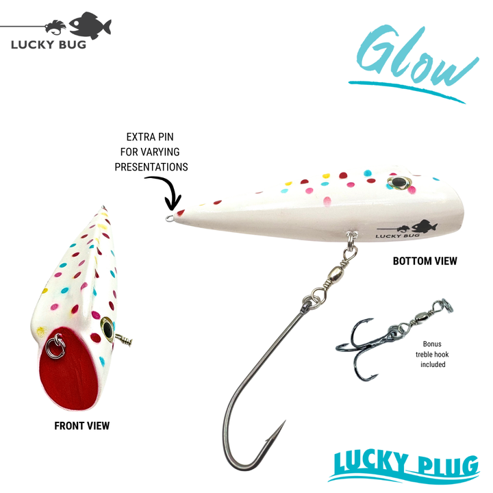 These Lucky Plugs come rigged with a single hook attached to the middle pin but we have also included a treble hook in the package to allow for a variety of hook configurations and presentations. PLUS, we now have a second pin on the tail for even more flexibility!