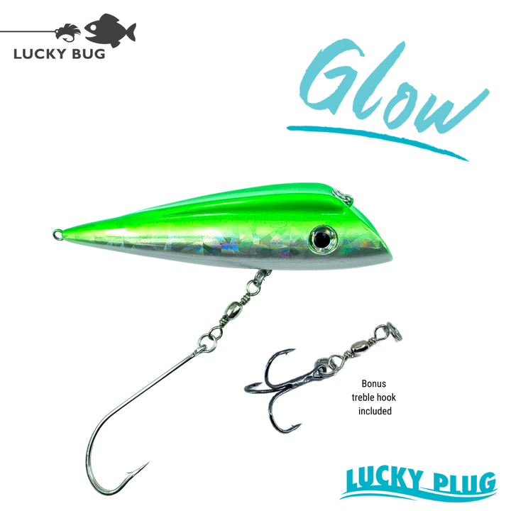 These Lucky Plugs come rigged with a single hook attached to the middle pin but we have also included a treble hook in the package to allow for a variety of hook configurations and presentations. PLUS, we now have a second pin on the tail for even more flexibility!