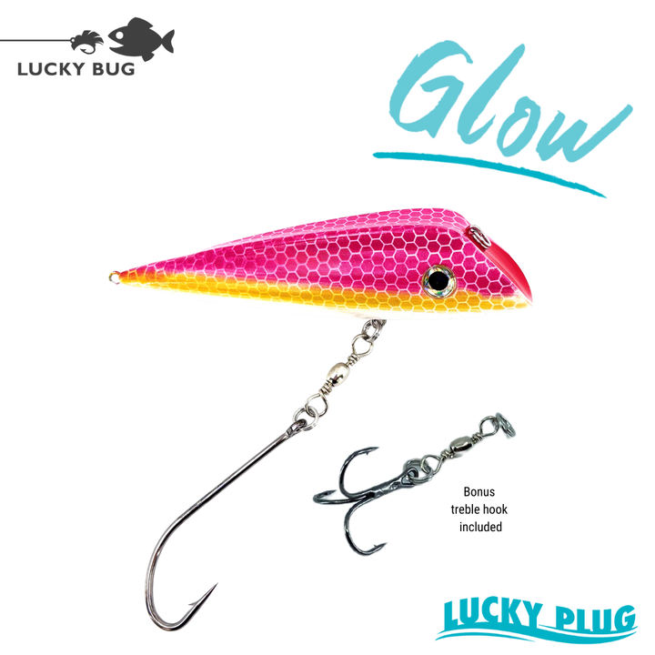 These Lucky Plugs come rigged with a single hook attached to the middle pin but we have also included a treble hook in the package to allow for a variety of hook configurations and presentations. PLUS, we now have a second pin on the tail for even more flexibility!