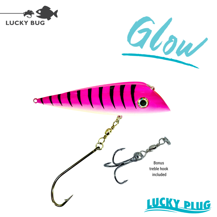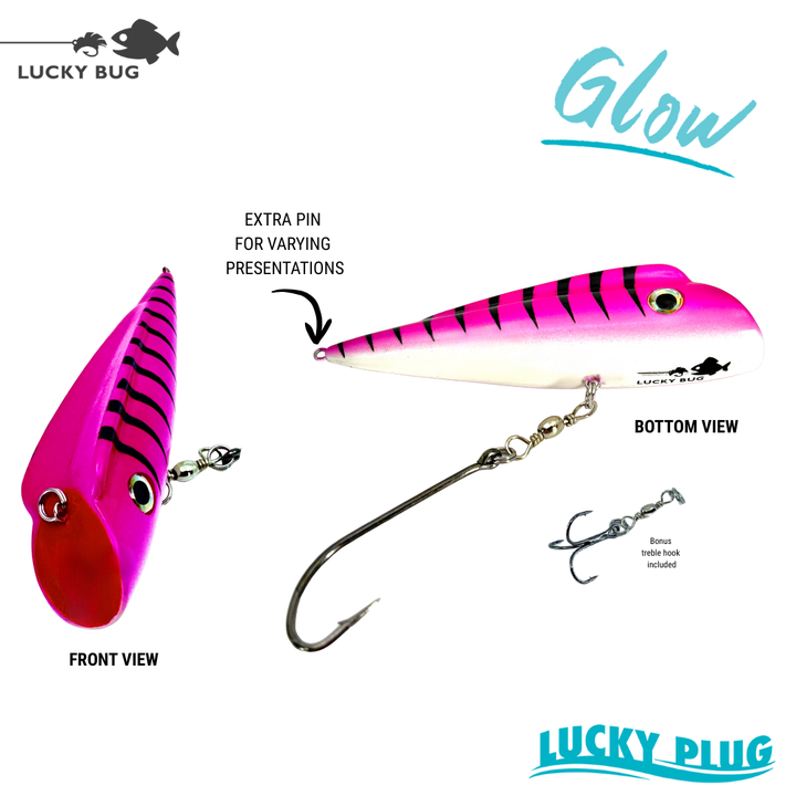 These Lucky Plugs come rigged with a single hook attached to the middle pin but we have also included a treble hook in the package to allow for a variety of hook configurations and presentations. PLUS, we now have a second pin on the tail for even more flexibility!